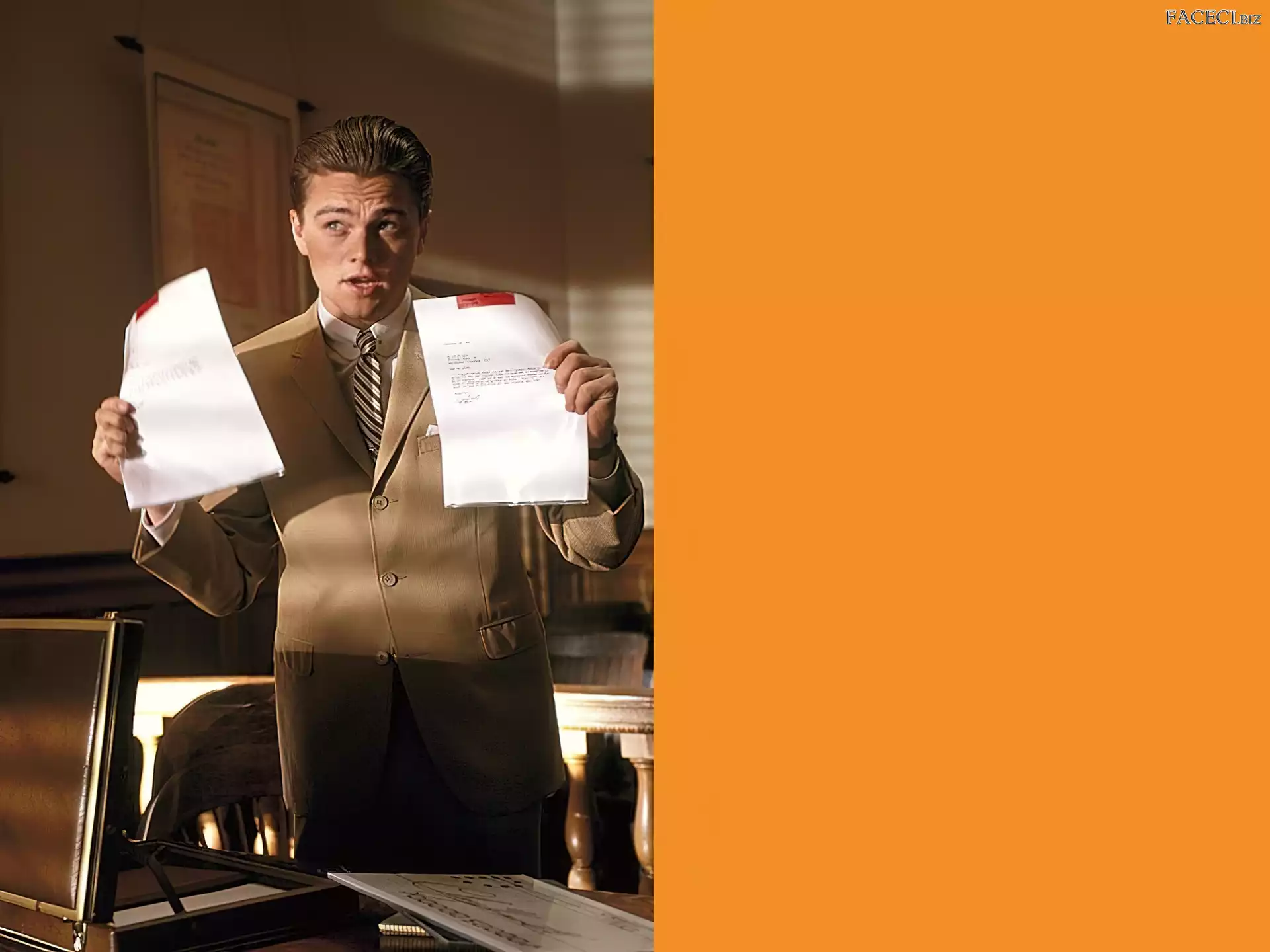 Leonardo DiCaprio, brązowa marynarka