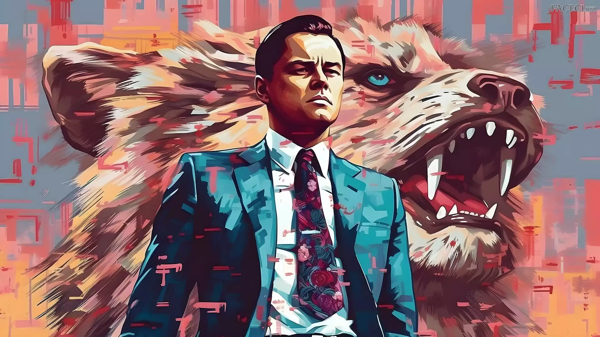 Film, Grafika, Mężczyzna, Wilk, Aktor, Leonardo DiCaprio, Wilk z Wall Street Film - faceci.biz